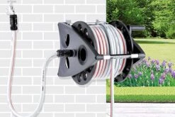 - Holds up to 40m of 1/2″ hose or 35m of 5/8″ hose.