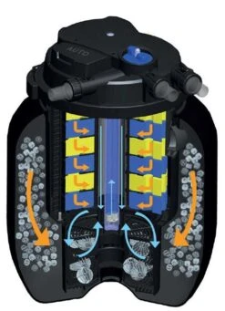The Pondxpert Auto Clean 50,000 litre pressure pond filters are easy to use clean and maintain with its inbuilt motor for self cleaning, It’s the perfect solution for koi pond keepers. With a built in 55w UV to prevent green water and automated filter foam cleaning. The One Touch Auto Clean System is fantastically easy to use, just turn the blue dial to clean and open the waste outlet motor turns a paddle to dislodge dirt and clean sponges. Dirty water runs out from the waste and is an excellent plant food.